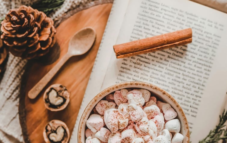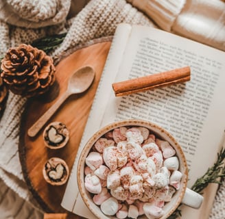 Hot Cocoa Bar: Set up a hot chocolate bar with marshmallows, whipped cream, and cinnamon sticks. A vintage kettle or copper mugs adds a touch of old-world charm to your cozy space.